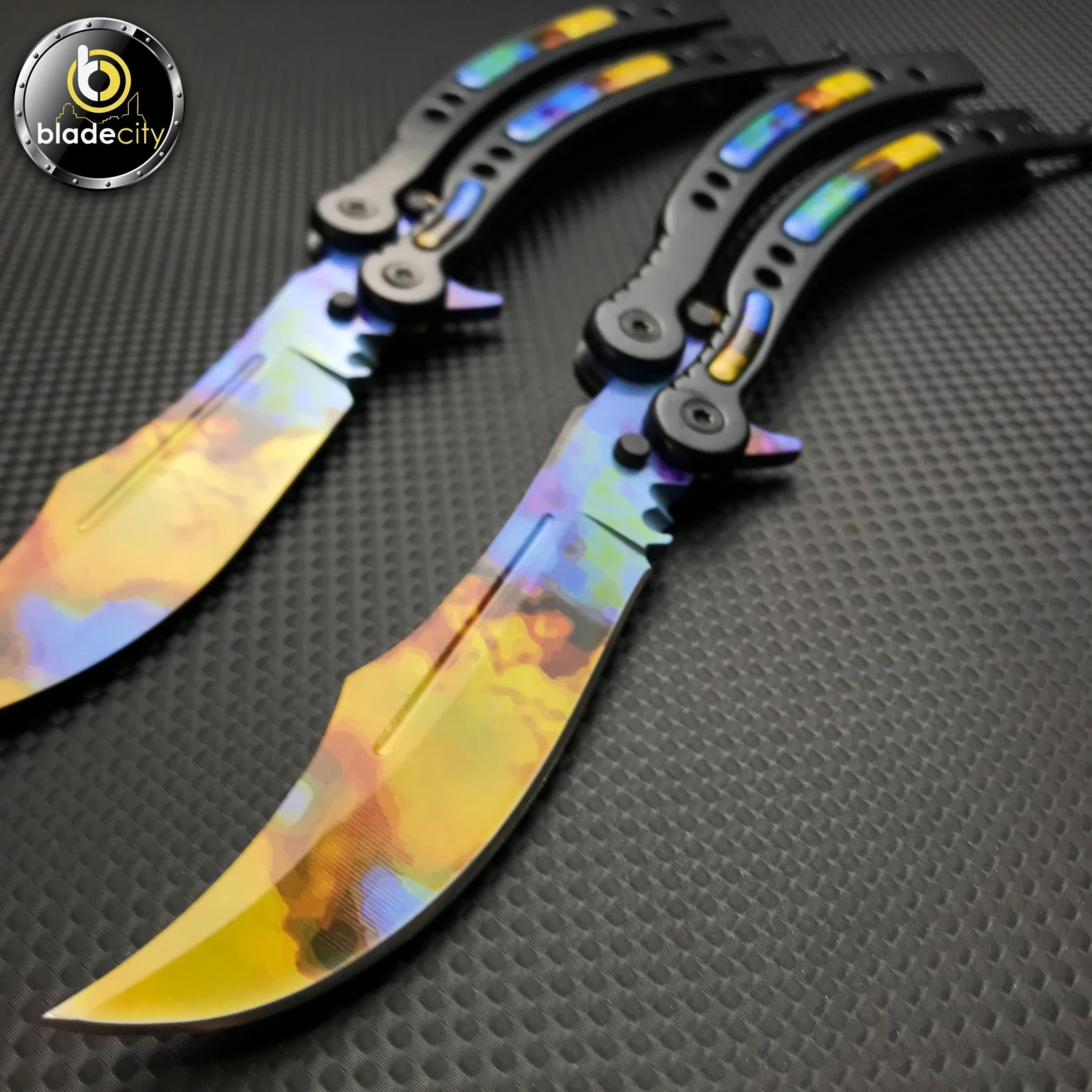 Blade City All Knives *2 Pieces* Case Hardened Balisong Trainer & Sharp Butterfly Set