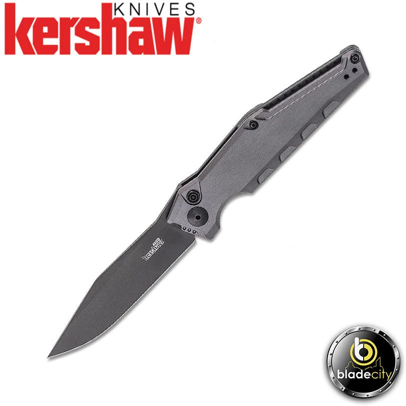With a long 3.75″ clip point blade of CPM-154, the Launch 7 offers a long, lean profile. The steel is the powdered metallurgy version of the popular 154CM knife steel. This version offers improved toughness, grindability, and polishability as well as providing excellent corrosion resistance and edge retention. The handle is highly sculpted for an attention-grabbing look. Machined contours on both handle top and bottom give the Launch 7 its modern, industrial aesthetic as well as ensuring a solid grip. The backspacer is fully integrated into the handle, adding to the Launch 7’s solid feel and great look. The handle is built of aluminum for lighter weight and is anodized in gray, making it stand out from the rest of the Kershaw automatic line.