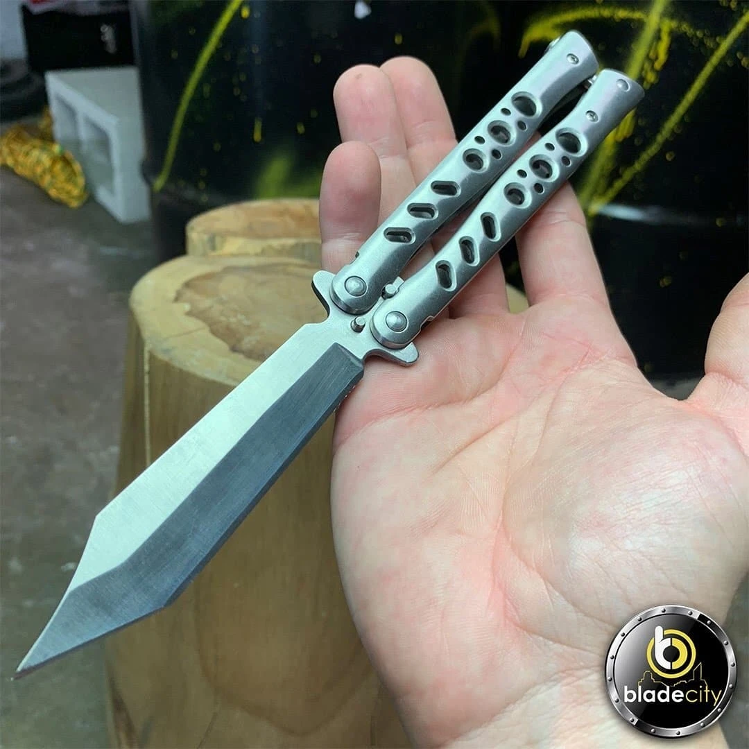 The Scorpion tip knife features a scorpion tip style tanto blade with razor sharpness. The handles are skeletonized to reduce weight and sport a polished stainless steel finish. Sandwich style construction with stainless steel back spacers. The scorpion tip also features Zen pins and the classic T latch to secure the knife open and closed. Designed in the USA.
