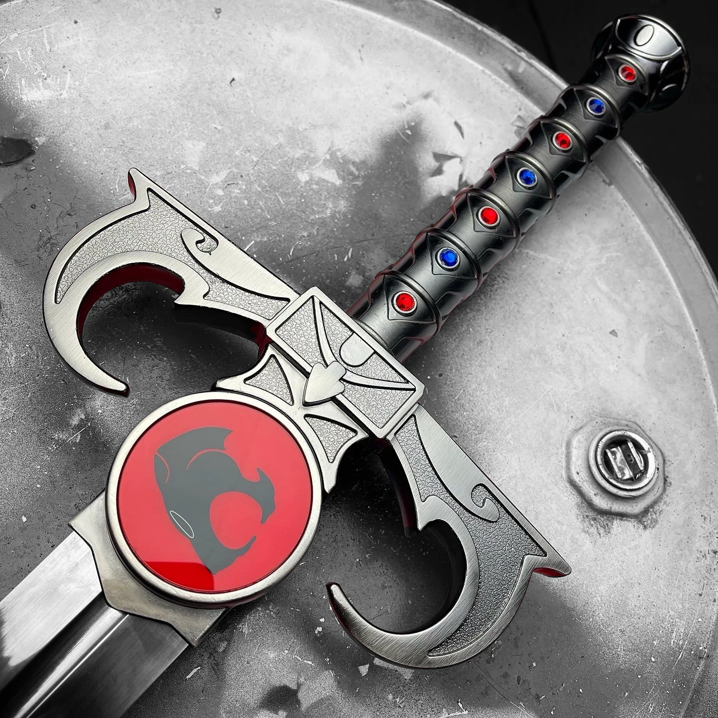 The Sword of Omens is a legendary sword in possession of the lord, Lion-O. It is one of the most prized cultural treasures for the people. With the help of the sword of Omen and the Eye of Thundera, they were able to defeat their enemies for the time being and become the most dominant race on earth. Since those days the lions are ruling over every other Thundercat clan. Leo’s descendent became kings passing down the sword of Omen to each lord. This functional sword of omens is now in possession of Lion’O, the current ruler.