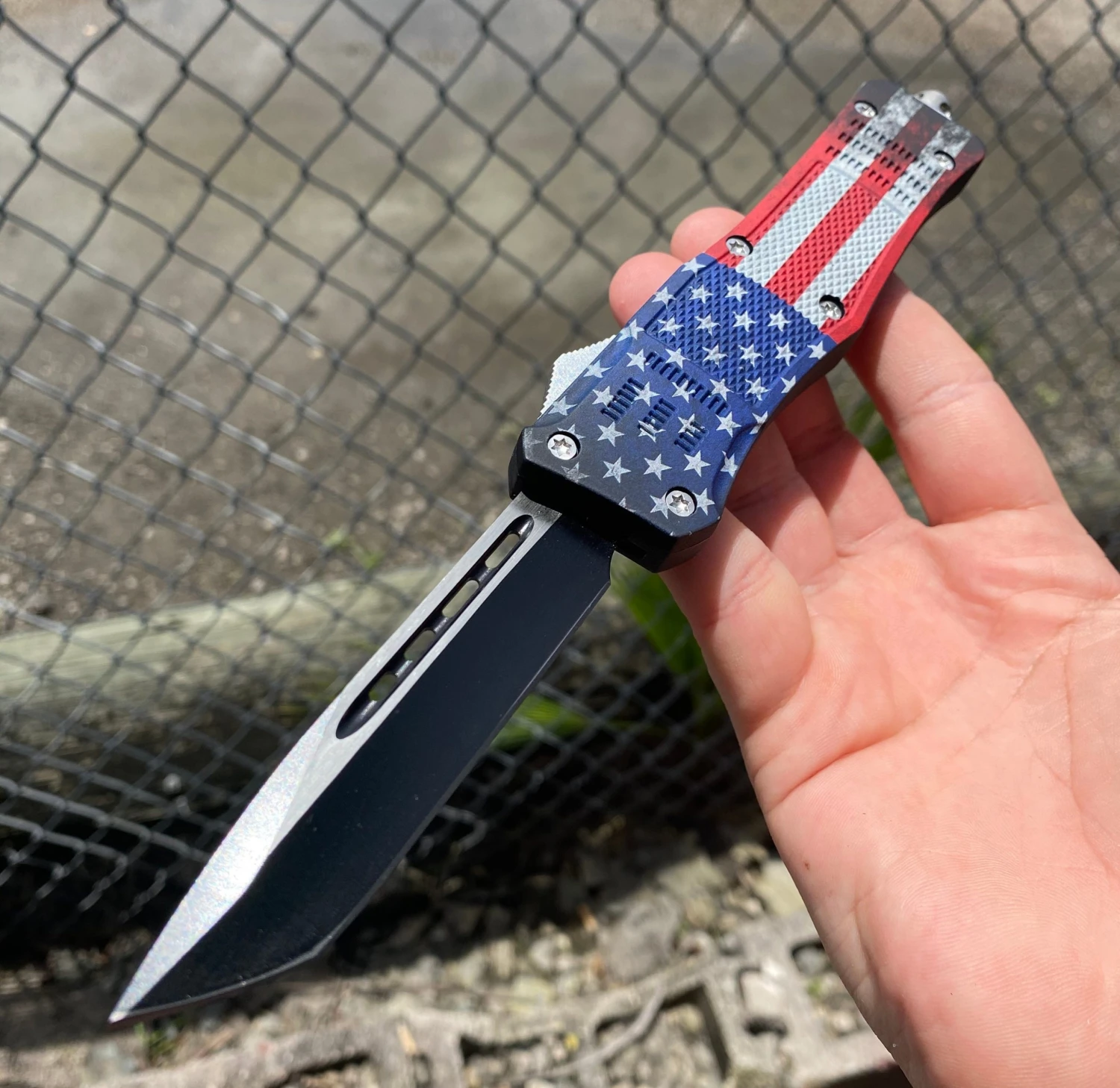 The Viper Tec Dual Action Out The Front Knife features a razor sharp Stainless Steel blade with a two tone matte black finish. The blade can be quickly deployed with the ambidextrous sliding button. Pushing forward on the button deploys the blade out the front of the handle and pressing backwards on the button retracts the blade back into the handle where it is ready again to be deployed at a moments notice. Comes with an ambidextrous pocket clip which can be easily changed to either side.